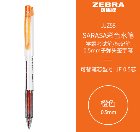 首页 > 办公用品 > 文具 > 斑马牌(ZEBRA)学霸利器中性笔 0.5mm子弹头拔帽签字笔 彩色学生笔记标注手账笔 JJZ58 橙色 单支装 (zhyghf_23099076)SKU:yzwhyp882286