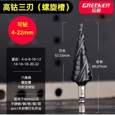 绿林(GREENER)宝塔钻头多功能电钻开孔器工业级高钴三刃4-22十阶 (zhyghf_93500527)SKU:yzwhyp882301