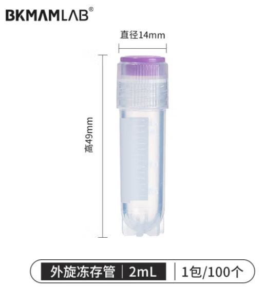 首页 > 仪器仪表 > 生物、医学样品制备设备 > 比克曼生物(BKMAM)内/外旋冻存管细胞冷冻管塑料螺口样品保存管带刻度 2.0mL外旋 100个/袋 (zhyghf_221721617)SKU:yzwhyp882342