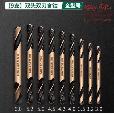 绿林(GREENER)双头麻花钻头大全套装打孔钢铁超硬双刃手电钻合金含钴不锈钢专用9只装 (zhyghf_93500523)SKU:yzwhyp882397