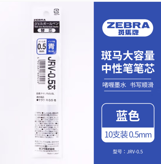 首页 > 办公用品 > 文具 > 斑马牌(ZEBRA)速干中性笔替芯 JRV-0.5芯(适用JJ29笔)0.5mm子弹头笔芯 蓝色 10支装 (zhyghf_23099107)SKU:yzwhyp882445