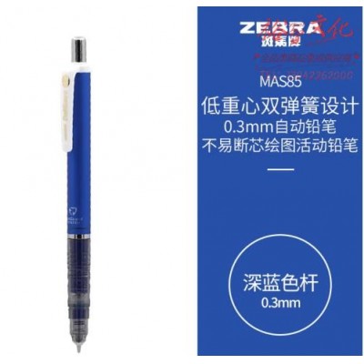 首页 > 办公用品 > 文具 > 斑马牌 (ZEBRA)0.3mm自动铅笔 不易断芯绘图活动铅笔学生用 低重心双弹簧设计 MAS85 深蓝色杆 (zhyghf_23099116)SKU:yzwhyp882455