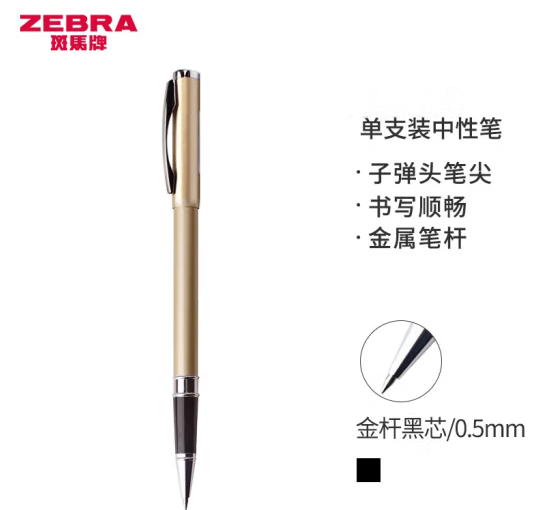 首页 > 办公用品 > 文具 > 斑马牌(ZEBRA)签字笔 晶灿金属笔杆中性笔 0.5mm子弹头商务礼品笔 C-JJ4 金色杆黑芯 (zhyghf_23099140)SKU:yzwhyp882479
