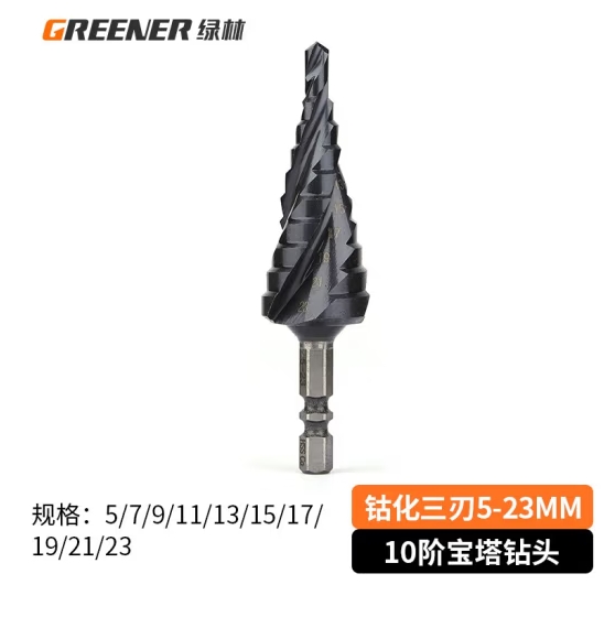 绿林(GREENER)三刃宝塔钻头 多功能打孔阶梯钻头钢铁超硬不锈钢扩孔钻金属钢 (zhyghf_93500379)SKU:yzwhyp882637