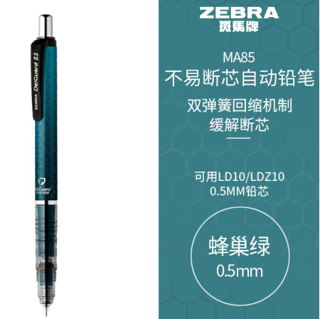 首页 > 办公用品 > 文具 > 斑马牌 (ZEBRA)0.5mm自动铅笔 不易断芯绘图活动铅笔学生用 低重心双弹簧设计 MA85 蜂巢绿杆 (zhyghf_23098922)SKU:yzwhyp882638