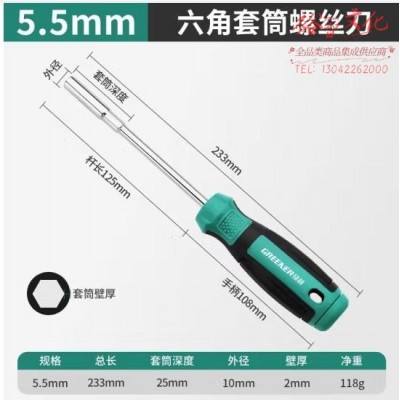 绿林内六角螺丝刀套筒加长外六角5.5mm套头起子套装扳手螺丝批 (zhyghf_93500428)SKU:yzwhyp882713