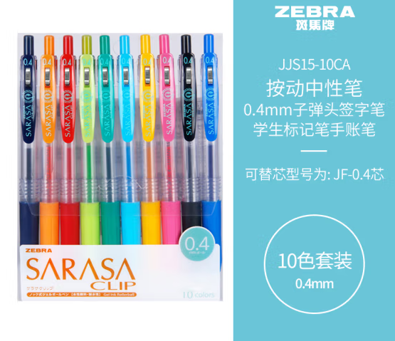 首页 > 办公用品 > 文具 > 斑马牌(ZEBRA)JJS15中性笔 0.4mm按动签字笔 学生彩色手账笔重点标记笔 JJS15-10CA 10色套装 (zhyghf_23099031)SKU:yzwhyp882744