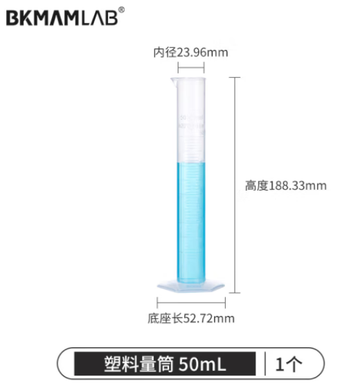 首页 > 仪器仪表 > 样品前处理及制备仪器 > 比克曼生物(BKMAM)塑料量筒PP塑料直型平稳耐高温带刻度实验室透明 普通量筒50mL 1个(5个起订) (zhyghf_221721252)SKU:yzwhyp882752