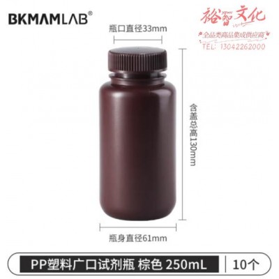 首页 > 仪器仪表 > 生物、医学样品制备设备 > 比克曼生物(BKMAM)PP塑料试剂瓶大广口瓶耐高温酸碱化学实验室样品瓶 【广口棕色】250mL-10个/包 1包 (zhyghf_221721277)SKU:yzwhyp882772