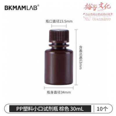 首页 > 仪器仪表 > 生物、医学样品制备设备 > 比克曼生物(BKMAM)PP塑料试剂瓶大广口瓶耐高温酸碱化学实验室样品瓶 【小口棕色】30mL-10个/包 1包 (zhyghf_221721278)SKU:yzwhyp882773