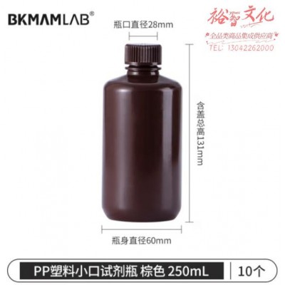 首页 > 仪器仪表 > 生物、医学样品制备设备 > 比克曼生物(BKMAM)PP塑料试剂瓶大广口瓶耐高温酸碱化学实验室样品瓶 【小口棕色】250mL-10个/包 1包 (zhyghf_221721288)SKU:yzwhyp882785