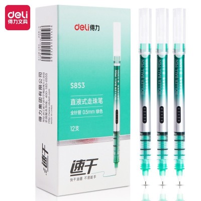 得力(deli)直液笔签字笔 0.5mm全针管彩色学生中性笔绘画彩绘笔 水笔走珠笔S853(绿)(12支/盒)
