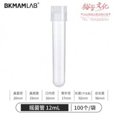 首页 > 仪器仪表 > 生物、医学样品制备设备 > 比克曼生物(BKMAM)塑料摇菌管细菌细胞培养管无菌两段式带刻度 12mL普通装 100个/袋 (zhyghf_221721295)SKU:yzwhyp882964