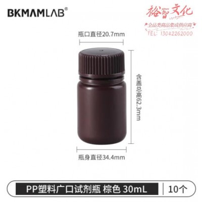 首页 > 仪器仪表 > 生物、医学样品制备设备 > 比克曼生物(BKMAM)PP塑料试剂瓶大广口瓶耐高温酸碱化学实验室样品瓶 【广口棕色】30mL-10个/包 1包 (zhyghf_221721271)SKU:yzwhyp882973