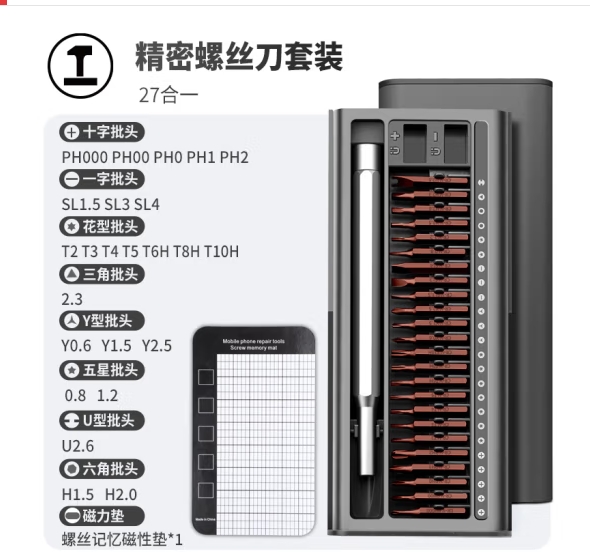 绿林(GREENER)螺丝刀套装精密S2带磁吸垫27合一笔记本拆机工具全套十字多功能 (zhyghf_93500247)SKU:yzwhyp882979