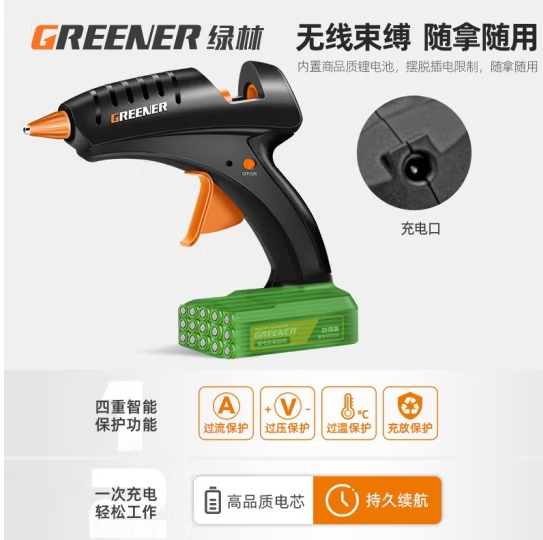 绿林(GREENER)热熔胶枪 家用锂电充电式【加强版】锂电胶枪 30根胶棒 (zhyghf_93500281)SKU:yzwhyp883019