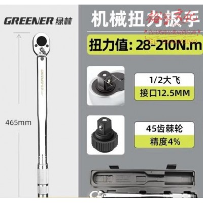 绿林(GREENER)1/2寸28-210Nm力矩扳手高精度扭矩扭力公斤扳手可调汽修工具 (zhyghf_93500315)SKU:yzwhyp883079