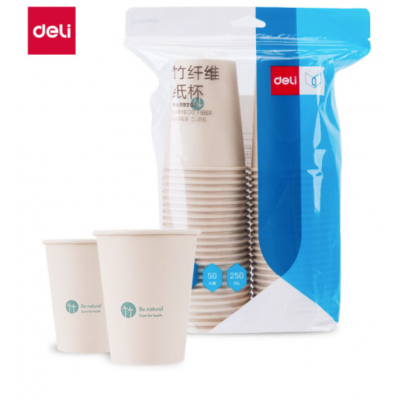 得力(deli)LP19208-44竹纤维纸杯(250ml)(本色)(100只/袋)