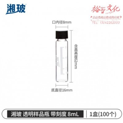 首页 > 仪器仪表 > 生物、医学样品制备设备 > 比克曼生物 湘玻 样品瓶玻璃螺口化学试剂瓶精油西林瓶粉末液体分装瓶透明棕色带盖 【带刻度】8mL透明 100个/盒 (zhyghf_221721196)SKU:yzwhyp883202