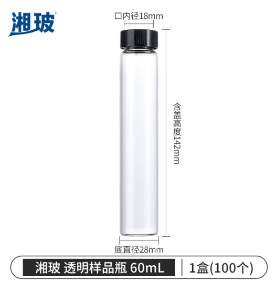 首页 > 仪器仪表 > 生物、医学样品制备设备 > 比克曼生物 湘玻 样品瓶玻璃螺口化学试剂瓶精油西林瓶粉末液体分装瓶透明棕色带盖 【无刻度】60mL透明 100个/盒 (zhyghf_221721236)SKU:yzwhyp883251