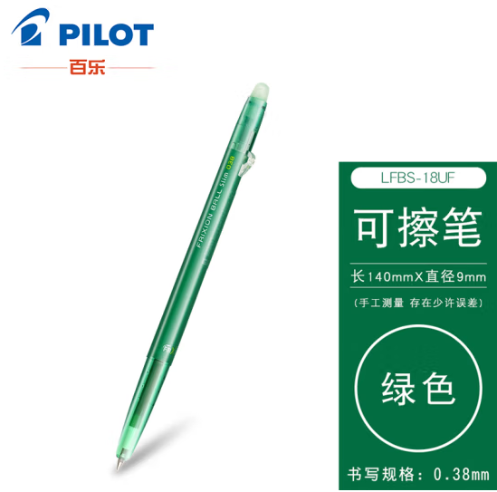 首页 > 办公用品 > 文具 > 百乐(PILOT)子弹头按动可擦笔可擦中性笔办公学习用笔LFBS-18UF-G 绿色 0.38mm 单支装 (zhyghf_23098697)SKU:yzwhyp883263