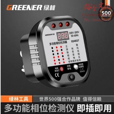 绿林相位检测仪多功能插头电源检测器插座测试极性验电器漏电地线A5相位仪(10A/16A通用) (zhyghf_93500219)SKU:yzwhyp883284