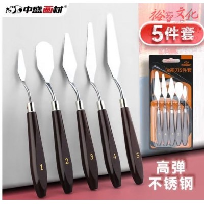 中盛画材 5支装油画棒刮刀颜料调色刀油画刀水粉画刀丙烯美术用品挑刀尖头圆头平头画具画材 (zhyghf_21101266)SKU:yzwhyp883312