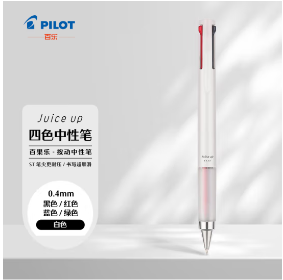 首页 > 办公用品 > 文具 > 百乐(PILOT)Juice up 百果乐四色中性笔彩色水笔 速干考试专用办公LKJP-60S4-W-CHN 0.4mm白色单支装 (zhyghf_23098590)SKU:yzwhyp883425