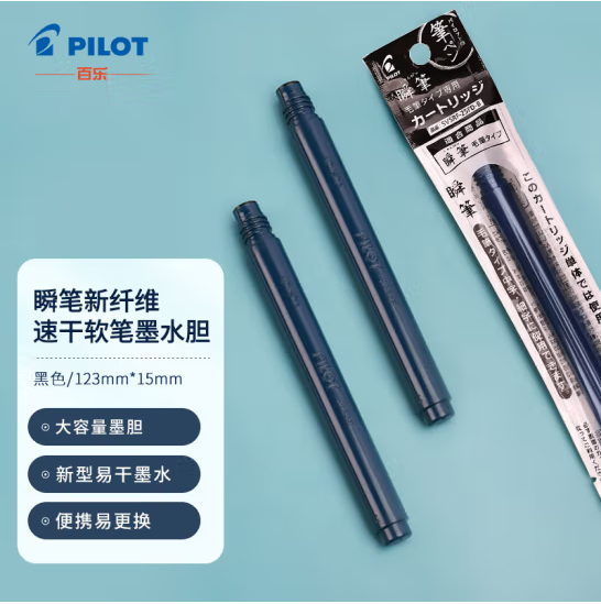 百乐(PILOT)钢笔式毛笔墨水胆科学纤维直液软笔墨囊 黑色SVSRF-25FD-B (zhyghf_23098603)SKU:yzwhyp883445