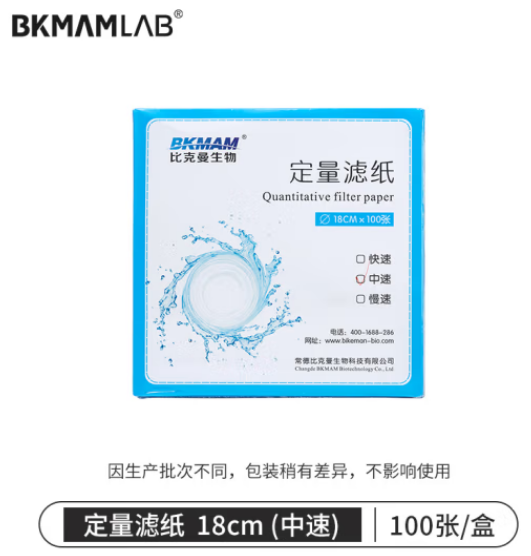 首页 > 仪器仪表 > 生物、医学样品制备设备 > 比克曼生物(BKMAM)定量滤纸快中慢速圆形加厚大张试纸机油检测化学实验室 18cm(中速) 100张/盒 (zhyghf_221721181)SKU:yzwhyp883461