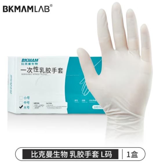 比克曼生物(BKMAM)一次性乳胶手套防滑加厚无粉麻指橡胶实验室耗材 大号 50双/盒 (zhyghf_221721185)SKU:yzwhyp883468