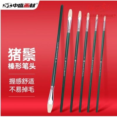 中盛画材 油画笔套装 6支猪鬃丙烯水粉水彩颜料专用排笔 绘画手绘墙绘毛笔工具美术生单号套装 (zhyghf_21101335)SKU:yzwhyp883478