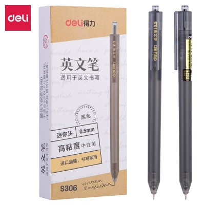 得力(deli)S306 0.5mm按动高粘度中性笔英文笔圆珠笔 迷你头12支/盒
