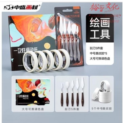 中盛画材 5卷美纹胶带 5把美术刮刀 调色本 (zhyghf_21101397)SKU:yzwhyp883563