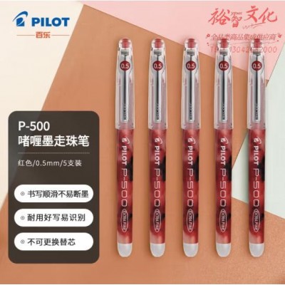 百乐(PILOT)BL-P50/P500水笔中性笔财务考试用签字笔 红色 0.5mm 5支装 (zhyghf_23098365)SKU:yzwhyp883584