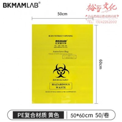 首页 > 用具 > 其他厨房用具 > 比克曼生物(BKMAM)危险品处理袋医疗生物垃圾袋耐高温废弃物垃圾袋 黄色PE复合50*60cm 50个/袋 (zhyghf_221720945)SKU:yzwhyp883601