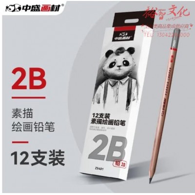 中盛画材 2B铅笔素描学生考试专用绘画图写字铅笔六角笔杆 12支/盒 (zhyghf_21101443)SKU:yzwhyp883651