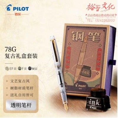 百乐(PILOT)FP-78G 钢笔套装 F尖商务签字笔练字送礼钢笔墨水复古礼盒装 透明色 (zhyghf_23098435)SKU:yzwhyp883672