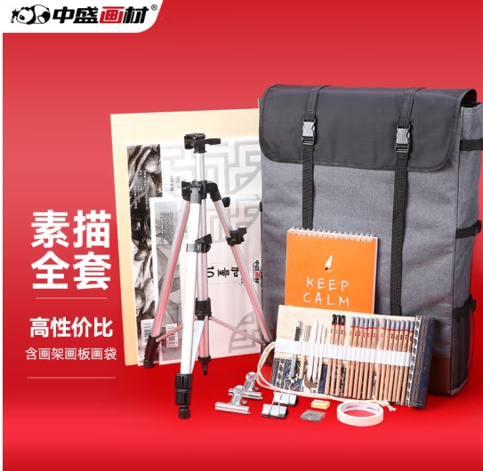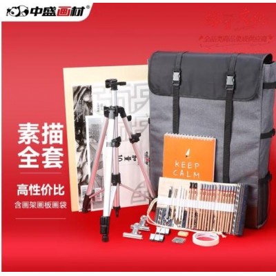 中盛画材 素描套装工具折叠画架画板4K写生素描纸初学者素描本学生画袋美术学生画袋炭笔笔帘 (zhyghf_21101500)SKU:yzwhyp883727