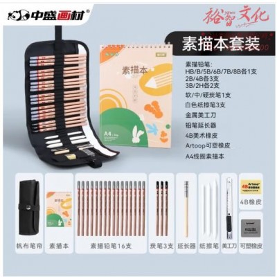 中盛画材 专业素描铅笔28件套 帆布笔帘绘图套装A4素描本 (zhyghf_21101504)SKU:yzwhyp883731