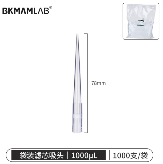 首页 > 仪器仪表 > 样品前处理及制备仪器 > 比克曼生物(BKMAM)移液器袋装吸头一次性无菌吸嘴加样枪枪头通用高适配 1000μL长78mm1000支/袋 带滤芯 (zhyghf_221721031)SKU:yzwhyp883734