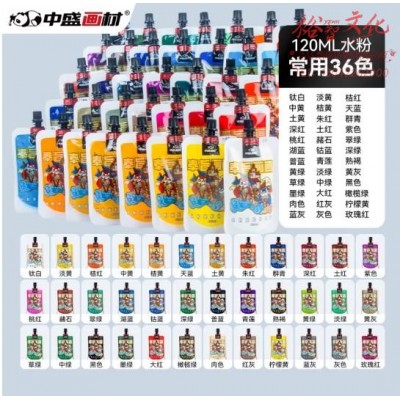 中盛画材 【加量20%】水粉颜料套装36色初学者艺考集训美术班涂料涂鸦画画便携补充果冻水粉颜料 (zhyghf_21101538)SKU:yzwhyp883791