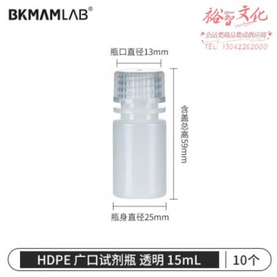 首页 > 仪器仪表 > 生物、医学样品制备设备 > 比克曼生物(BKMAM)HDPE塑料试剂瓶 大广口样品瓶化学实验室用 【15mL本色】10个/包 1包 (zhyghf_221721480)SKU:yzwhyp883879