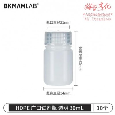 首页 > 仪器仪表 > 生物、医学样品制备设备 > 比克曼生物(BKMAM)HDPE塑料试剂瓶 大广口样品瓶化学实验室用 【30mL本色】10个/包 1包 (zhyghf_221721482)SKU:yzwhyp883883