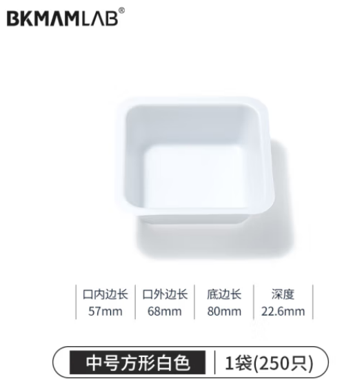 首页 > 仪器仪表 > 分析仪器辅助装置 > 比克曼生物(BKMAM)塑料称量盘称量船实验室一次性称量皿低吸附耐腐蚀 中方白色 250只/袋 (zhyghf_221721495)SKU:yzwhyp883906