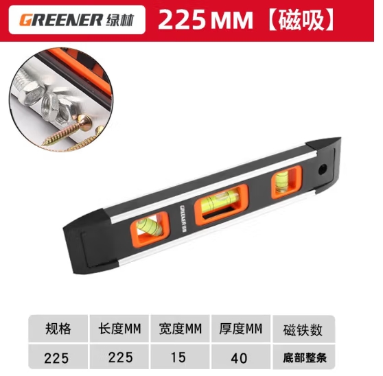 绿林(GREENER)水平尺高精度磁性家用装修铝合金【磁吸款】便携水平尺225mm (zhyghf_93500196)SKU:yzwhyp883954