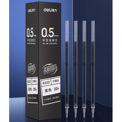得力S222臻顺滑中性笔替芯0.5mm子弹头(黑)(单位:盒)每盒20支