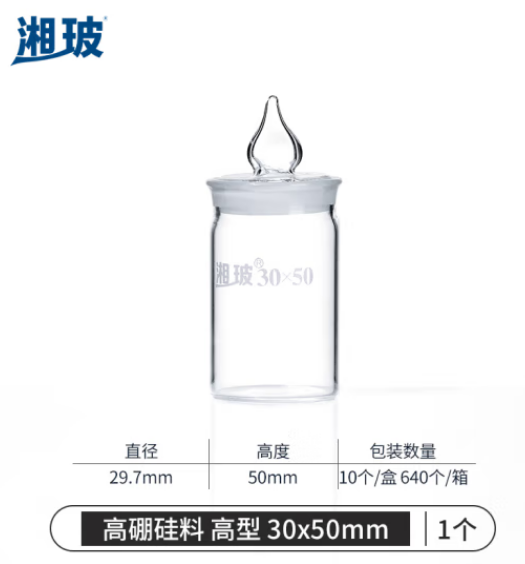 首页 > 仪器仪表 > 生物、医学样品制备设备 > 比克曼生物 湘玻 玻璃称量瓶实验室高型带盖称量皿样品标本瓶浸泡 高型称量瓶 30*50mm 1个 (zhyghf_221722013)SKU:yzwhyp884405