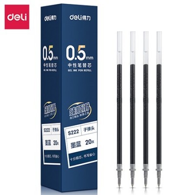得力S222 臻顺滑中性笔替芯0.5mm子弹头(墨蓝)(20支/盒)