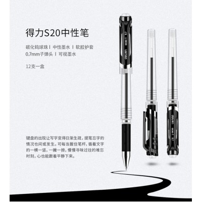 得力签字笔 S20 黑色 0.7mm 12支/盒